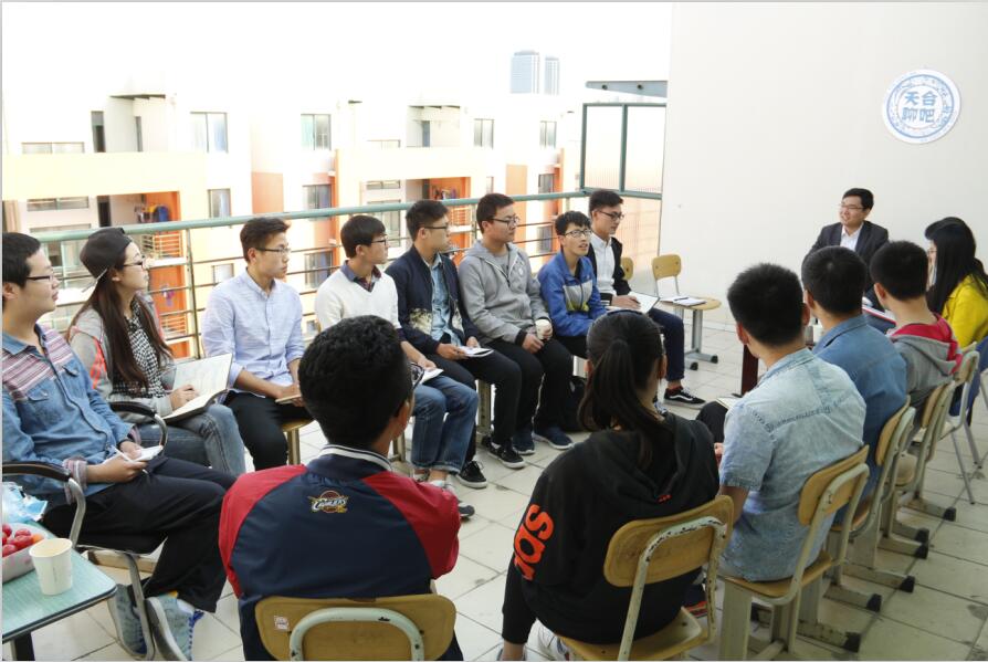 天台聊吧现场准备了饮料、水果,气氛轻松和谐。“员工工作包含哪些内容?”王力禾以提问的方式开始了本期讲座。他从教育、管理、服务三个方面细致的讲解了员工工作的相关内容,并重点结合新媒体工作开展情况讲解了网络思政教育;结合校园安全问题讲解了危机的预防,并要求大家关心身边同学的心理状态,关注宿舍等区域存在的安全隐患;当谈到正确三观和健全人格培养时,王力禾说道:“石油大学工科特色明显,大家在培养专业素养的同时也要注意发挥文体特长,培养业余爱好,提高人文素养。”