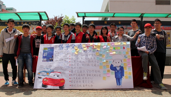“同学,请把你知道的关于交通安全的温馨提示写下来吧!”中午12点,正是员工下课的黄金时间,在玉兰苑餐厅东门的空地处,电气1405团支部成员已经摆好宣传展板等物品,他们身穿红马甲,吸引过往员工,并上前解说此次团日活动的主题和目的,得到较多员工的参与。