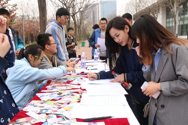活动现场热闹非凡,自动化1501班同学邀请过往的老员工参与填诗活动,并给填对诗词的参与者送上自制的精美书签。由于诗词并不常用于日常生活当中,一些参与的同学都只能口头上说出诗词的大概内容。“故园东望路漫漫,双袖龙钟……”一个同学挠着头拼命的回忆着,面对各式各样精美的奖品,这位同学始终不肯放弃,最终还是未能写出正确答案。作为鼓励,该同学也获得了自动化1501班送出的青花瓷书签一枚,这位同学拿着书签不禁慨叹自己以后要尽量多的涉猎中国文学。活动还设有趣味书法比赛,或方或斜的毛笔字,透露出每一位参赛同学不同文字功底。活动中,同学们还纷纷与自动化1501同学扮演的古装诗人合影留念。