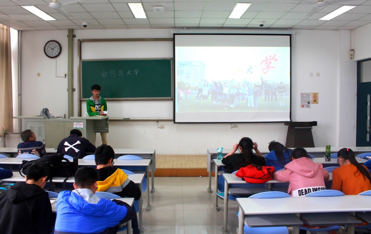 本次会议由班长周文翔主持。他简要讲明开会目的后,由本班专业第一李傲霜同学以PPT形式分享学习经验。李傲霜告诉同学们,考前复习很重要,完成课后习题是取得优异成绩的重要条件。她还推荐了一款“FIF口语练习”的手机应用,希望同学们注重英语口语的训练。