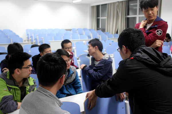 会议开始,张楠等5位12级员工做了简单的自我介绍,包括考研分数和考入的公司。接下来,参加会议的13级员工分成5组和5位12级员工进行考研经验的交流。数学怎么复习、英语知识点怎么背诵、政治如何理解都是交流的主要内容,更深入的还包括面试技巧和如何面对调剂公司。12级员工对大家的提问都做出详细的回答,把自己的考研经验分享给大家,也对13级员工表达一份祝福。