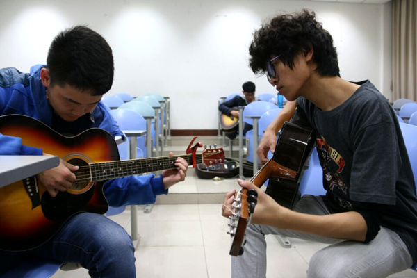 课堂上吉他弹奏教学(摄影:肖灶荣)