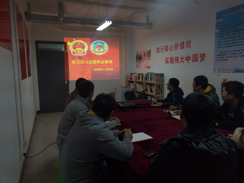 会议首先围绕两会期间的热词,由“脱贫攻坚”、“绿色发展”、“农业现代化”、“两岸关系”、“创新”、“强军兴军”、“民族团结”、“政商关系”、“供给侧需求改革”等分别展开,解读国家在各个方面的发展方向。周光兵着重指出,2016年是“十三五”规划开局之年,去年召开的党的十八届五中全会为“十三五”期间国家经济社会发展提出了明确的目标、要求和任务。“十三五”如何开局,怎样落地,应是每个党员关注的焦点。支部还将通过微信、微博等平台,为同学们全面学习贯彻“两会”精神创造条件。随后,支部成员互相交流了自己对“两会”的认识,崔朝丽同志讲到:“两会是国家政治生活中的大事,关乎民计民生。作为当代老员工,学习两会精神,将有助于提高支部成员党性修养。”最后,支部书记刘勇总结道:“两会代表国家一年的工作方向,我们要积极吸取两会思想,不断提高自己,为现代化建设尽一份力。”