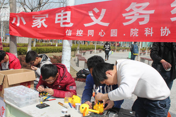 3月19日,公司“同心圆”青年志愿者协会携手校无线电协会、院科协共同举办的“关爱社会,扬我所长”小家电义务维修活动在荟萃广场举办。