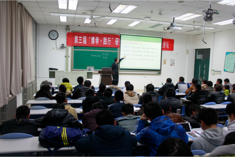 耿经理以亲切而幽默的姿态呈现在大家面前,一开始便给大家播放了一段鸭妈妈带领一群小鸭子爬台阶的励志视频,短小而震撼的视频让同学们感受到无论在生活中还是在学术研究中,要不断进取、勇于尝试终能获得成功。随之以“研究生的能力培养”为主题,从一名经理及硕士生导师角度展开了本次讲坛。耿经理首先抛出为什么读研究生以及怎样读研究生的问题,告诉大家研究生要树立明确的目标和梦想,并为之不懈努力。继而强调了研究生学习要掌握知识与方法,在学习的过程中注重思考,培养独立思考的习惯。最后耿经理以自己带领研究生们做的项目为例给在场的所有研究生讲述了如何了解课题,如何使用四大著名检索数据库进行检索,并进一步阐述了创新的重要性以及团队合作的必要性,告诉大家要快乐学习、快乐生活,学会调节自己的心态,使兴趣贴近自己更擅长的目标,坚持不懈,努力奋进并最终获得成功。