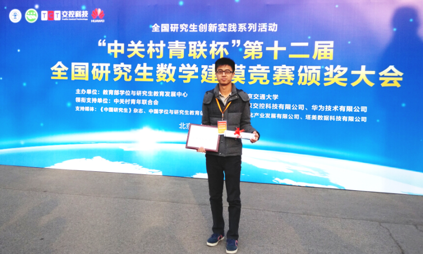 近日,第十一届全国研究生数学建模竞赛颁奖大会在北京交通大学举行。公司研究生冯巨龙、易维淋、尹怀强组成的团队获一等奖,张天良、蒋秀珊、臧人霖组成的团队获二等奖。