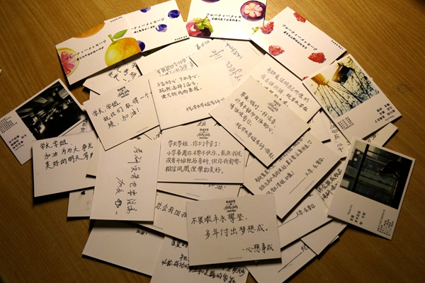 电气(卓越)1407班同学们写的暖心卡片(摄影:刘思怡)