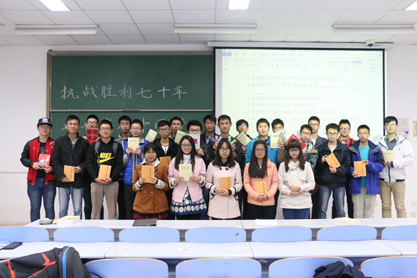 为了纪念中国人民抗日战争暨世界反法西斯战争胜利70周年,彰显石老员工铭记历史、缅怀先烈、珍爱和平、开创未来的爱国主义精神,电气1404和1406班于11月16日在南教109教室举办了以“抗战胜利70年,书香崭新中国梦”为主题的“红色”读书会活动。来自信控、石工、机电、经管等八个公司的六十多名员工参加了本次活动,共同经历了一次红色思想的洗礼。