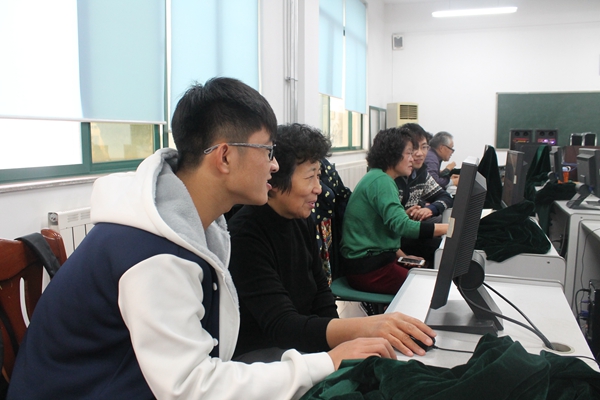 同学们刚到达老年大学计算机室,就受到爷爷奶奶们的热烈欢迎。本次活动采用一对一教学模式,爷爷奶奶们向同学们提出在日常使用电脑时遇到的问题,例如怎样在网上聊天,如何上传手机照片,如何在线观看视频等。同学们则针对不同的问题,给予耐心的解答,并反复上机演示,还手把手指导爷爷奶奶们上机练习。其间,老人们还亲切地询问同学们的在校学习情况,气氛温馨和谐。“非常感谢同学们,帮我解决了一个大难题”,七十岁高龄的刘锡铭爷爷握住同学的手,激动地说。
