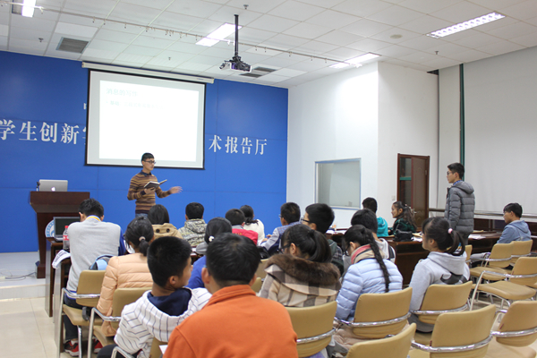 工作室新闻主编石琳琳给刚刚加入的2015成员讲解了相机的一些功能并分享了拍照的一些技巧。随后,采编部部长庞启华就新闻写作与参与人员进行了交流。庞启华从最基础的知识开始教导大家如何去写、如何写好新闻稿件。部员积极互动,依次进行了练习。最后,庞启华与大家分享他大一年来的经历,“要做自己的朋友,让自己了解自己的心,做喜欢的、认为对的事情,就是最好的选择。”让成员们对于未来从事的新闻宣传工作有一个正确的定位, 引发成员们思考。培训结束后,琳琳对下一步工作进行了详细安排,并明确了部门考核制度。