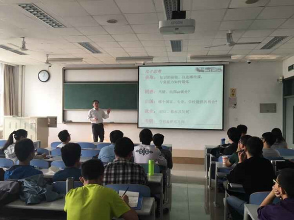 会上, 副经理王宇红教授首先就大三同学所面临的就业、考研、出国等选择进行了分析,教导同学们要根据情况做出选择,并且早做准备。田甜老师就优秀本科生出国交流项目和联合培养项目给同学们做了详细的讲解。最后,同学们提出自己的疑惑,与两位老师进行交流,同学们踊跃发言,气氛热烈。