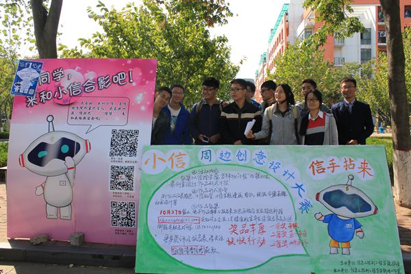 活动期间,工作室成员通过向来往同学老师派发传单,对感兴趣的同学进行具体的解释和指导。队员们用温馨的话语和热情的态度,向全校员工展示信控公司员工的风采,邀请员工们与“小信”合影等。这些活动加深了同学们对于“小信”和信控公司的印象,极大调动了部分同学对于设计的积极性,也使信控公司的敢于创新实践精神深入人心。