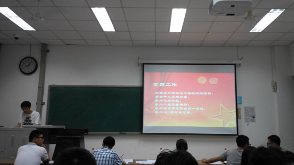 2015年9月10日,公司2013级员工第一党支部在南堂113召开2014-2015年度党员述责答辩大会,支部书记孟兆刚老师、辅导员王宁老师、26位员工党员以及4位员工代表评委出席了党员述责答辩大会。