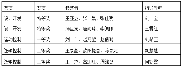 经华北四赛区比赛选拔,公司共5支队伍入围总决赛,最终获得设计开发赛项特等奖2项、运动控制赛项一等奖1项、逻辑控制赛项二等奖1项、三等奖1项。其中,由公司员工王亚立、张晨、张家明完成的作品(指导教师:刘宝副教授)以全国第一名的成绩获得设计开发赛项特等奖。