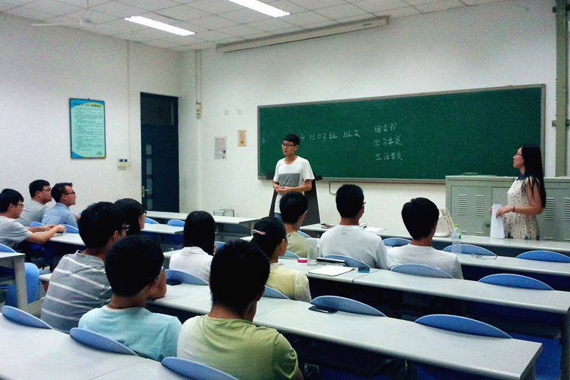 7月8号晚七点的上课铃声响起,信息与控制工程公司13级辅导员王宁抱着一摞工作资料走进南堂101教室,随后电子1303班的期末总结班会暨班委换届大会正式开始。