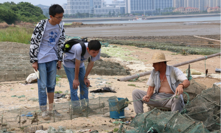 “蓝天”实践队的调研课题是“黄岛区海岛保护与开发的调研”,坐落在唐岛湾中央的牛岛成为实践队调研的第一站。万事开头难,“我们首先就不知道怎么登岛,只有等到退潮后徒步走上去。”队员文杰指着裤脚的泥巴说道。