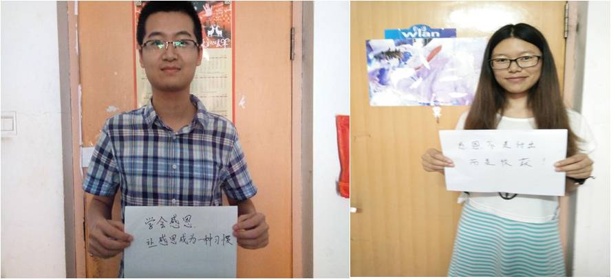 同学们将自己精心准备的感恩的话语写在纸上,拍成图片汇集成册。真挚的语言、纯真的笑脸,一次又一次撞击着我们的心。一句句话语,让大家看到了感恩的种子在萌芽、灵魂在升华。“这次活动带给我们的不仅是开心欢乐,还有一份感动,相信这份感动会一直停留在每一位同学心中,带着它,继续向着自己的目标努力前进。感恩父母,带给我们生命;感恩老师,教授我们知识;感恩朋友,时时刻刻鼓励我们自己。相信我们感恩的心会继续,爱也会继续。”班长王丽说道。