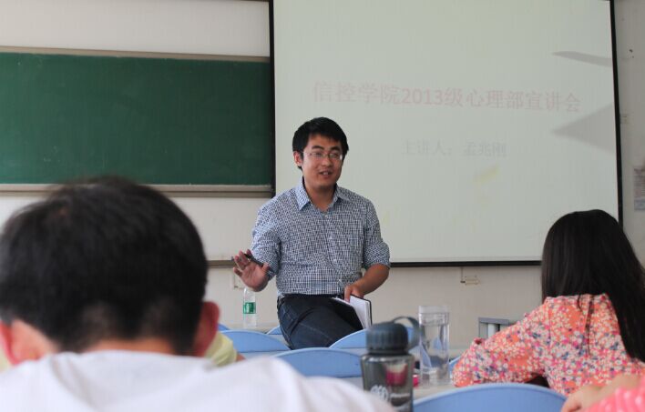 5月31日下午3时,信控公司2013级在南堂116召开心理健康宣讲会, 辅导员孟兆刚主持了会议,2013级全体心理委员参加了本次会议。