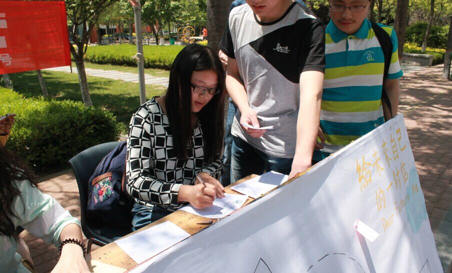 5月20日上午,信控公司员工会在玉兰餐厅西侧举办“时间胶囊”主题活动,活动负责人董雪梅向过往员工宣传到:“让书信当做现在与未来的沟通桥梁,快来写一写你想对未来说的话吧!”