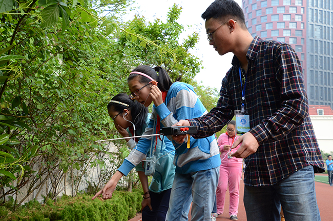 在授课老员工为小朋友普及了光学、电磁学的小知识后,“猎狐”实践课正式开始,小朋友们被分为三人一组,在简单了解了探测器的使用及“猎狐”规则后,就迫不及待的出发开始“猎狐”――搜寻事先安放好的信号源。小组队员一个操作探测器,另外两个塞着耳机仔细监听声音的变化,沿着操场边的草丛慢慢踱着步子,偶尔还会停下来,眯起眼睛,屏住呼吸。“在这,快来!”一声声的兴奋就像找到了宝藏。