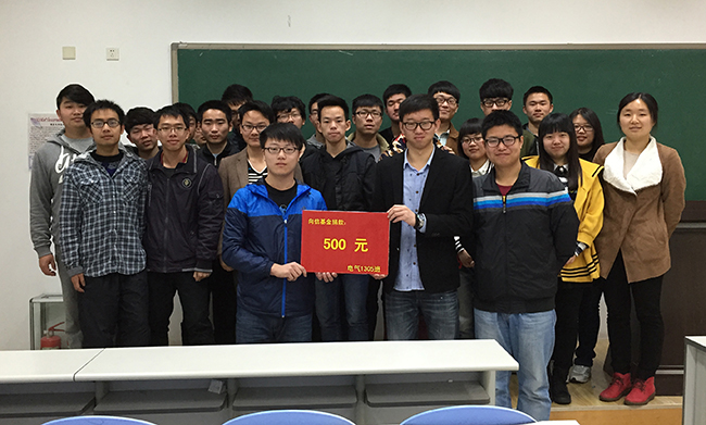 随后,信基金负责人张逸凯向全体同学介绍了信基金的设立目的及基本情况,并一一介绍了信基金从建立之初到现在所进行的各项资助活动,这让大家更加深入地了解了信基金,也加深了对信基金的支持与信任。最后,由柴杨代表班级将500元善款交予信基金负责人张逸凯。张逸凯、蒲鑫纷纷表示他们感动于电气1305班此次的集体善举,同时也感谢大家对信基金的支持与信任,欢迎大家对信基金的收支状况进行监督。