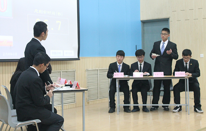 辩论赛从开篇陈词、攻辩、攻辩小结、自由辩论、总结陈词五个部分展开。由来自电子1401的“HBU辩论队”对战自动化1403的“千机辩辩论队”。两队围绕“当今时代应该提倡‘爱一行,干一行’还是 ‘干一行,爱一行”展开辩论。辩论中,正方旁征博引、坚守立场;反方引经据典,巧妙化解。智慧与幽默,针尖对麦芒,两方对阵充分展现了辩手们敏捷的思维和雄辩的口才,为在场观众、评委带来一场视觉与听觉的饕餮盛宴。最终,经过激烈的辩论,“HBU辩论队”以微弱优势战胜“千机辩”辩论队,进入最终决赛。
