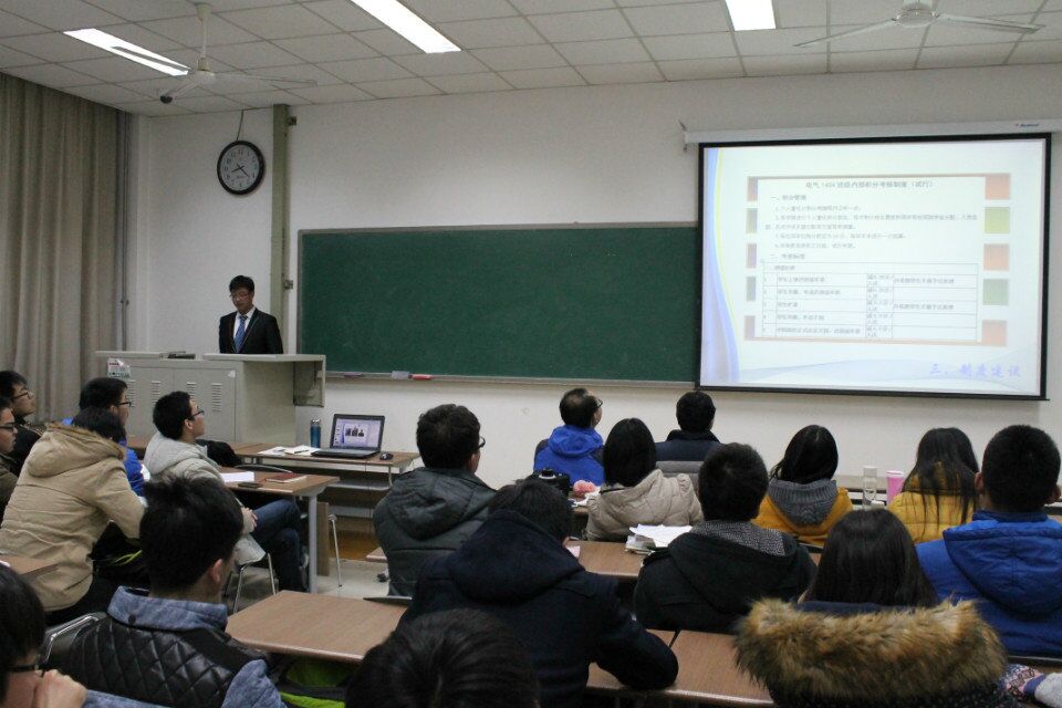 为总结第一学年班级工作,明确个人及班级未来的发展方向,公司电气1404班于1月7日,在南堂311举行了学期总结汇报会。班主任陈熙老师、14级辅导员王力禾老师出席此次会议,班长李庆主持会议。