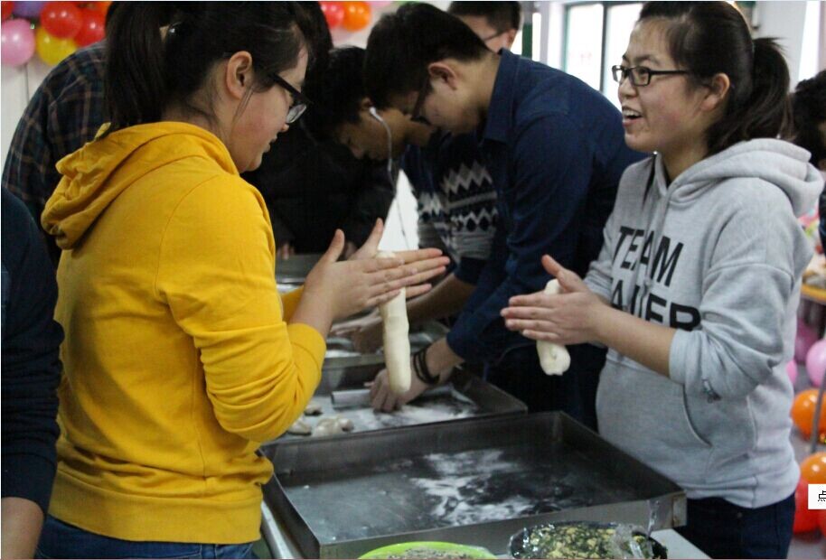 本次活动由多位班委联合举办,班级全体员工积极参与。活动准备就绪,同学们就迫不及待的冲到桌子旁,他们撸起袖子,摩拳擦掌,准备展现自己的身手。和面、搓面、擀面皮、包饺子,大家纷纷找到自己的拿手项目,同学们包的饺子虽然千奇百怪,但展现出各地饺子不同的风采,女同学心灵手巧,不满足传统饺子的形状,她们试着玩起各种花样,各种精美别致的饺子腾空而出。当然活动的同时少不了娱乐,有同学趁机把面粉抹在别人脸上,同学们你追我赶,忙的热火朝天、不亦乐乎,活动室里笑语连连,热闹非凡,使同学们远在他乡也能感受到冬日的温暖和家庭的温馨。当热腾腾的饺子端上来时,大家拿着碗勺,去品尝自己的劳动成果,心里满满的幸福。晚饭过后,活动室里开展了形式多样的娱乐活动来庆祝2015年元旦的到来。撕名牌大战、歌曲接力、七拼八凑等各种游戏让每个同学都感受到了集体的力量。