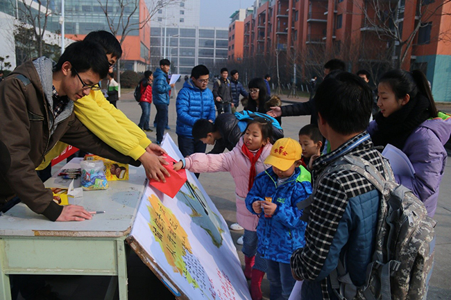 系列活动从三个方面展开,签名抽奖活动、主题班会和话剧表演。签名抽奖活动于12月30日中午12时在荟萃广场举行。充斥着正能量的主题活动吸引了大批同学的参与,其中不乏教职工与小员工。大家的积极参与彰示了同学们对诚心的关心与重视。