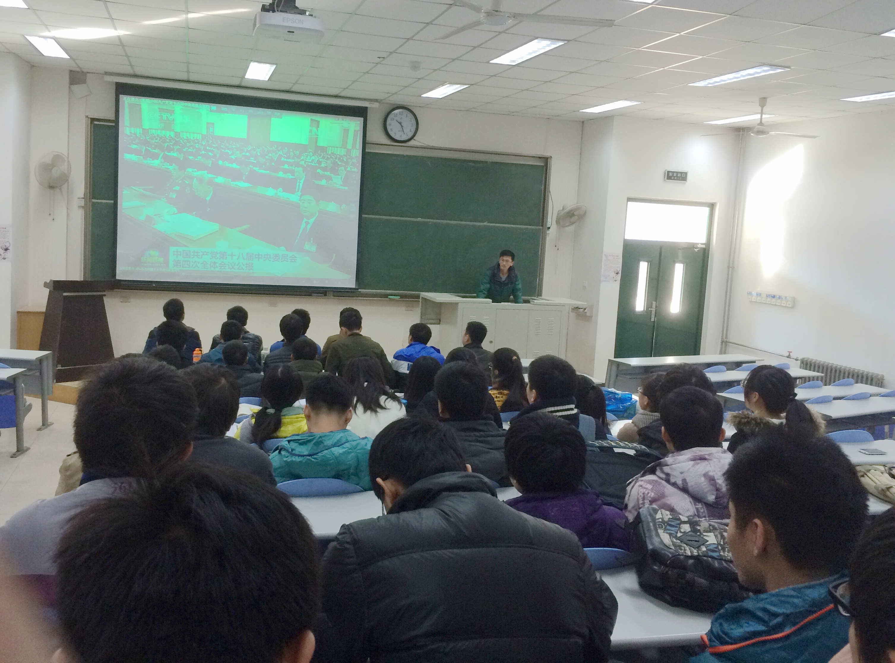 近日,测控2013级1班、2班联合举办学习讨论十八届四中全会精神的主题团日活动。