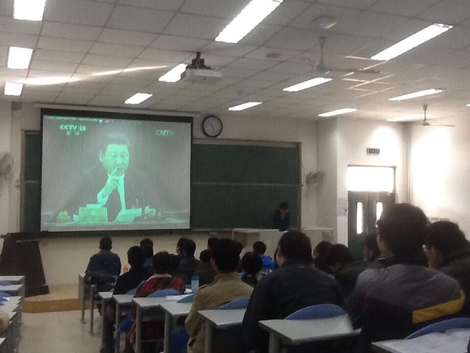 自十月份以来,党的十八大四中全会被社会各界广泛关注,不断学习,12月6日,13级测控专业全体员工特意齐聚东廊,积极开展关于十八届四中全会精神的学习讨论会。