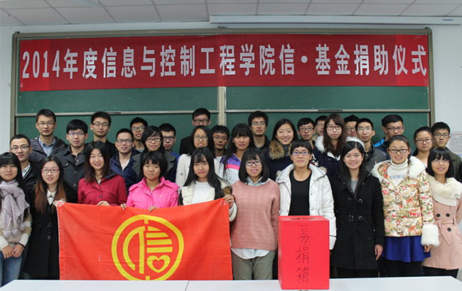 11月30日,信息与控制工程公司信•基金捐助仪式在南教216教室举行,公司研究生辅导员姜飞老师出席本次仪式,本科11、12、13级和研究生、博士生党支部各党支部骨干成员,本科14级各班的团支书参与本次仪式。