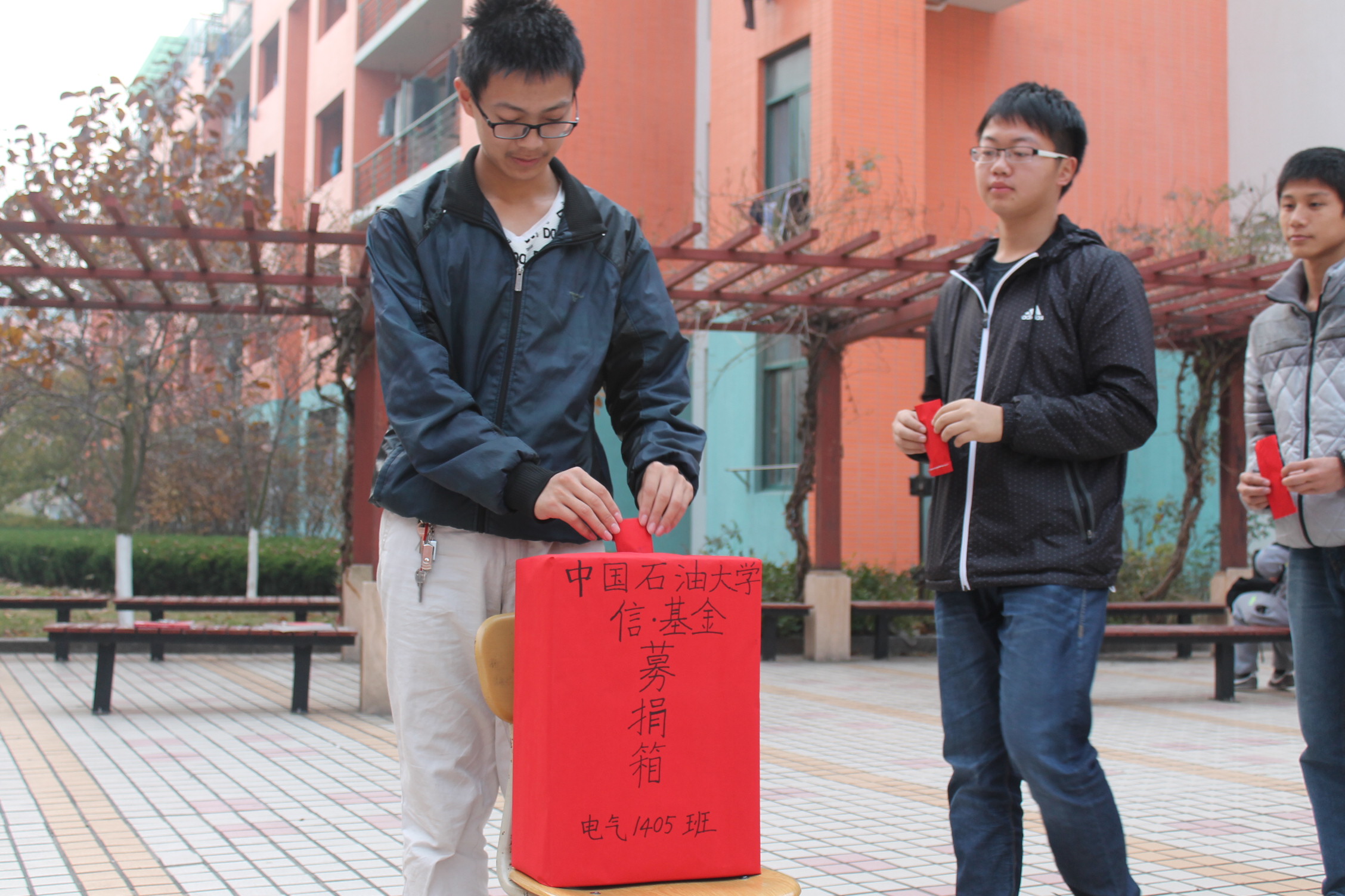 为响应信控公司“信基金”发起的“节约零用钱,奉献大爱心”的号召,电气1405班于11月21日下午在4号员工公寓楼下组织本班同学为“信基金”自愿捐款,电气1405全体员工参与其中。