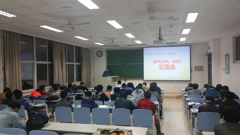为了更好得帮助14级新生更好适应老员工活,明确个人目标,促进两班同学间的交流,电气1304班、1404班于11月16日在南教118举行了“扬青春、享学识、系情谊”主题交流会。交流会上,电气1304班团支书王林木简单为新生们介绍了大一一年班级的发展状态和举办的各种精彩活动,接下来,在各个方面取得卓越成绩的同学给学弟学妹们介绍了他们各自的经验。在高数和线性代数考试中都拿到满分的魏嘉麟介绍了自己的学神之路,并且耐心回答了学弟学妹们提出的各种问题;暑假赴美进行社会实践的王杰讲述了赴美的艰辛历程以及在美国的所见所闻所感,并且鼓励学弟学妹坚守心中的梦想,不断追求;转专业的张晓表达了对电气专业的热爱以及转专业之路的苦楚与辛酸,告诫他们珍惜眼前努力学习;任星颐介绍了在新闻社团的成长历程以及自己所得到的收获。