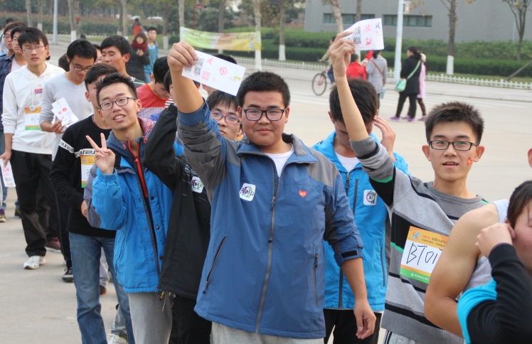 此次迷你马拉松挑战赛结合石大校园环境,设立了独具特色的路线,全程长约五公里,途中更有轮滑队员为大家指明方向和给予鼓励。我班在活动前期积极筹划,做好了此次活动的准备工作,每位同学的脸上都贴着写有“测2”爱心标志的贴纸。一路跑来,为了心中共同的心愿,大家的梦想与脚步都不曾停下。同学之间携手同行,亲如一家,这是一次爱与温情的生命之旅!到达终点时,每个人的单子上盖满了印章,一个个鲜红的印记见证了此次意义非凡的活动,它将为许多在无声世界里徘徊的孩子开启希望之音。最后,全体同学在创造太阳前合影留念。