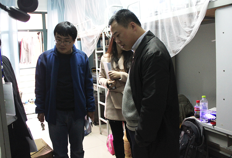 付罡书记一行先后来到公司员工相对集中的10号公寓、4号公寓、7号公寓和14号公寓进行查看。走访过程中,付罡书记和辅导员们仔细查看了宿舍环境,并与员工亲切交流,了解同学们在学习、生活情况和思想动态。在与员工交流中,付罡书记多次强调做好宿舍安全和卫生工作的重要性,提醒同学们要共同维护良好的宿舍卫生环境,养成良好的生活习惯。对于个别宿舍存在的卫生情况较差,衣物乱扔乱放等现象提出批评,要求限期整改。