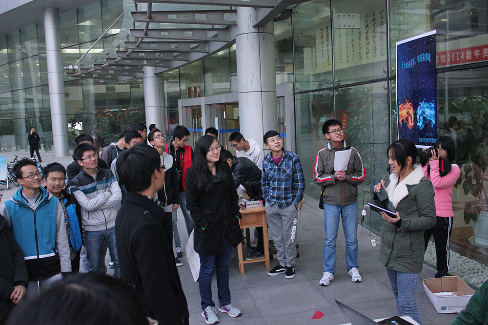 此次团日活动分两个现场同时进行,分别为“一站到底”有奖知识竞答活动和答题抽奖活动。在激烈的知识竞答活动现场,同学们自愿上台报名参赛,进行1V1对抗,现场围观的同学越来越多,来参与知识竞答赢大奖的同学也越来越多,在激烈的对抗中,同学们充分发挥石大学子博学多才的精神,渴望通过战斗证明自己,赢得丰盛的奖品。恰逢下班时间,图书馆里的工作人员也来一展风采,参与到激烈的知识竞答活动中来。这边激战正酣,在另一边,答题抽奖活动也在热火朝天地进行着,工作人员分发知识卡片,答对的同学就有机会参加抽奖获得精美礼品,同学们踊跃地答题并抽奖拼人品。当有同学抽中一等奖时竟激动举起拳头一跃而起,更加刺激起了现场其他同学的参与热情!由于现场参与度过高,工作人员不得不临时加印知识卡片,截至活动结束,共发出近900张卡片。
