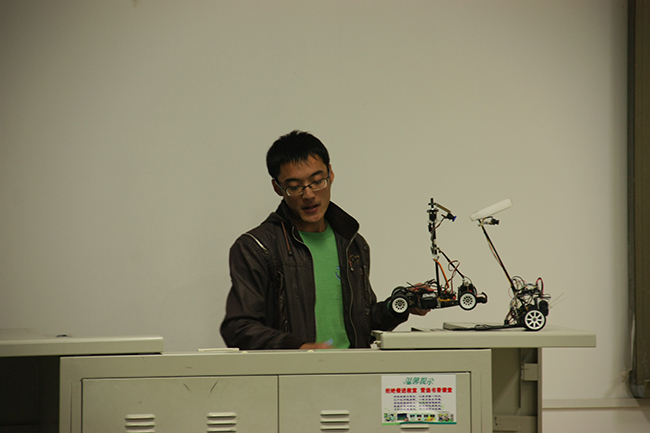 刘建邦首先分别就搜索资料、分析流程、设计开发和运行经验四个方面向同学们进行了详细的阐述。他通过比赛时录制的现场视频让大家感受比赛时的氛围,并用自己的切身经历鼓励大家多去尝试电路设计。随后电气工程及其自动化专业1205班冯玉涛同学布置了第十二届电子电路设计竞赛的具体比赛要求,同时也分享了自己宝贵的参赛经验。最后公司科技协会主席王廷伟就学习资料方面做了补充。