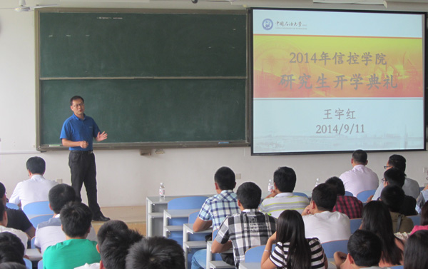 【通讯员:徐莹 夏森】9月11日下午,信控公司2014级研究生入学典礼于南教203举行,公司副经理王宇红教授、党委副书记付罡、研究生教学秘书娄胜南及2014级全体新生参加了开学典礼。付罡书记首先代表公司向2014级新同学的到来表示诚挚欢迎,随后,副经理王宇红从如何坚持学术诚信、培养科研能力、奖学金等多个方面与研究生进行交流,鼓励每位研究生胸怀科研梦想,端正科研态度,做一个有IDEA的研究生。最后,娄胜南老师就研究生信息管理系统和培养计划的制定情况向研究生做了相应的说明。