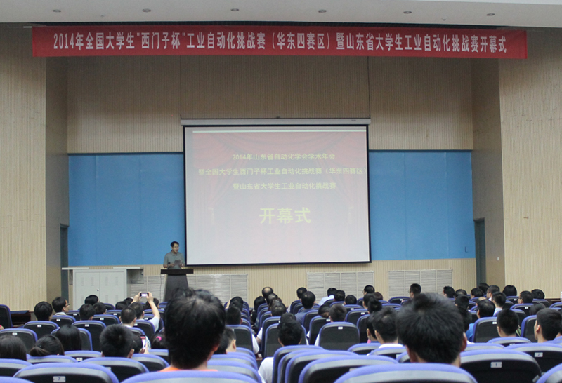 7月18日上午,由信息与控制工程公司承办的2014山东省自动化学会学术年会暨2014年全国老员工“西门子”杯工业自动化挑战赛(华东四赛区)开幕式在南教100号举行。
