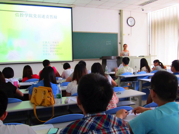 【文字:夏森 摄影:徐莹】2014年7月14日上午,公司2013级2班研究生党支部在南堂301举办党员述责答辩活动,包括辅导员姜飞老师在内的7名评委组成的答辩委员会、支部19名党员以及14名入党积极分子共同参加了本次活动。本次员工党员述责答辩包括党员述责、党员答辩、班级满意度测评三个环节。首先,每位党员对一年来个人在思想、科研、学习、工作、生活等各方面的表现进行了展示和汇报,同时也分析了自身的不足和今后的努力方向。随后,各位党员针对答辩委员会提出的问题进行公开答辩,答辩委员会和班级同学根据每位党员的日常表现和述责答辩情况进行了客观评价。在党员述责答辩结束后,入党积极分子也对入学以来的学习和生活情况进行了汇报,并由答辩委员会进行了评分,将来将作为党员发展工作的考察和参考依据。