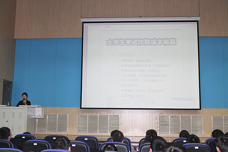 结合近期学工部下发的考试违纪处分文件,王老师再次强调了考试纪律的重要性,并以实际的案例让同学们认识到了考试作弊的严重后果,在期末来临之际为同学们敲响了警钟。随后,王老师用四份优秀学姐学长的简历引出老员工学业生涯规划问题,建议大家从现在开始,按照简历需要呈现的内容,规划学业生涯,积累素材,为未来顺利就业打下基础。