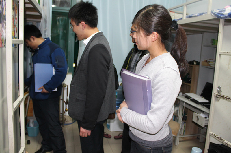 为响应公司党委员工工作部关于“宿舍安全卫生检查”号召, 5月3日晚,公司2012、2013级辅导员带领主要员工干部组成检查组深入员工宿舍,检查宿舍安全、卫生情况。