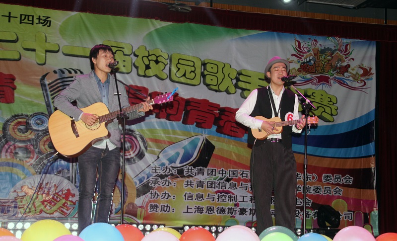 歌声嘹亮,音符飘扬,青春激荡,梦想起航。为营造青春阳光、积极向上的校园文化气氛,展示公司老员工的才华,由公司举办校园“缤纷翠园”第74场文艺活动“E+H”杯第二十一届校园歌手大赛总决赛于4月27日晚7点,在唐岛湾三楼多功能厅隆重举行。本次活动以“奏响青春旋律,传唱中国梦想”为主旨,历时半个多月,先后经历海选、初赛、复赛和决赛四个阶段,最终产生参加总决赛的10位选手。“E+H”公司副总经理王卓军教授,公司党委员工工作部副部长邹维忠,公司党委副书记付罡、团委书记赵小明等应邀出席晚会,青岛开发区广播电台主持人雨霏、音乐系部分教师参加晚会并担任评委。 总决赛在习舞堂爵士队的一支劲舞中拉开决赛序幕。随后十强选手两两PK,依次登台献唱。各位选手倾情献艺,精彩纷呈的节目使得整场晚会掌声不断,晋级选手在第二轮演唱中各显奇招:姚华吉他弹唱《I'm yours》,李宏晨携其乐队演唱《我要我们在一起》,付诗慧别具风格演绎《管他什么音乐》等等,引起赛场观众的阵阵掌声和欢呼。选手们对歌曲的改编演绎为观众带来一场耳目一新的音乐盛宴。最后,阿依波以一首《时间都去哪了》俘虏现场观众和评委,夺得本次大赛的冠军。总决赛在公司艺术团的啦啦操表演圆满落下帷幕。