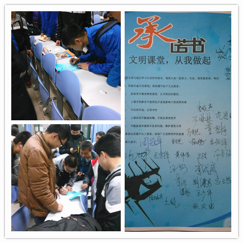 下午3点,主题班会按计划进行,大家首先观看了一部关于课堂文明的短片,然后针对一些不文明现象以及文明课堂对自身的影响和意义发表了自己的看法。大家纷纷表示,大公司园是高素质人才聚集的地方,理应把它建设成为一方更加文明的净土,大家应以实际行动来促进文明课堂的建设。最后,全体同学在班长团支书的带领下在承诺书上签字,并且在班会结束后对教室进行了简单地打扫,将班会精神落实到了实处。