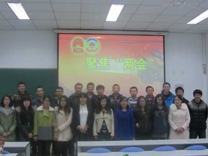 首先,党支书张倩放映幻灯片带领大家学习了“两会”机制,感受了“两会”氛围,使同学们对两会的概念,由来及其召开的意义等有了一定的了解。然后,她通过图片的方式讲解了两会期间的政府工作报告内容,让大家对政府的工作总结、工作展望、改革突破等方面内容有了基本认识。最后,大家一起观看了有关“六大热点问题”的短片,并围绕治理雾霾、单独生二胎以及禁止铺张浪费等问题展开了讨论,现场气氛非常热烈。