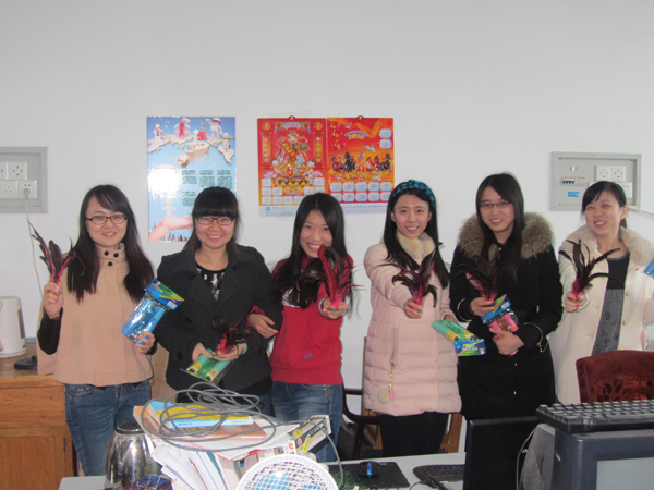 3月7日下午,公司研究生会的代表同学按照名单抵达全院所有研究生工作室,转达了公司男生的深深祝福,并将精心采购的毽子和跳绳等健身用品送到女生手中,希望她们能在紧张的学习和科研工作之余,合理参加身体锻炼,做到“每天锻炼一小时,健康生活一辈子”。