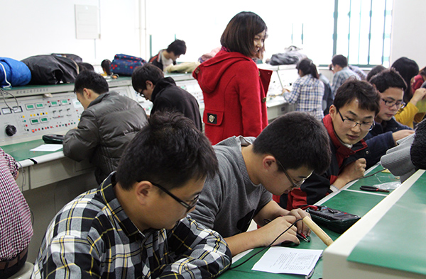本次比赛首次引入了设计环节,组委会提前三天在公司网页上对题目进行了公示,参赛队员可以选择自行设计电路图,并在参赛当日按照自己的设计图进行焊接,成功通过测试即可在评审中能获得相应的加分。在比赛中,各组参赛队员相互配合,有条不紊的完成电路规划、安装器件、焊接、功能测试等各道工序,现场气氛紧张而热烈。作品上交完成后,公司电工电子教学中心三位评委老师从是否自行设计电路图、功能实现情况、焊接工艺、用时长短等多个方面对参赛作品进行了综合评定,评选出一等奖一组,二等奖三组,三等奖五组。