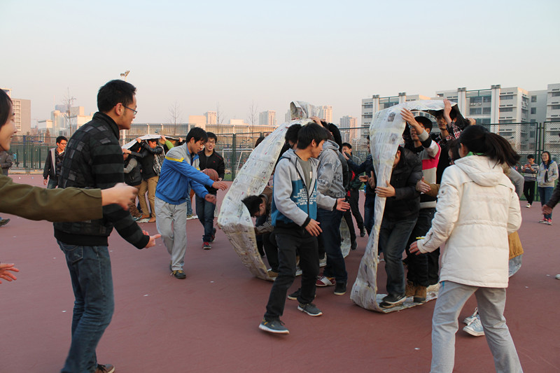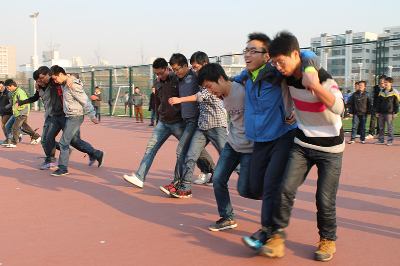 在此次比赛中,主办方电子11-1班各班委有条不紊的指挥赛场秩序,同学们积极参与其中。 “袋鼠夹球”游戏最引人注目,不少同学奇思妙想出多种创新花样,进行接力时,团队需要默契的合作来成功完成比赛,比赛不仅考验同学们的速度,更重要的是队伍之间的协调能力。未参赛的同学在赛场外加油鼓劲,比赛在热烈的氛围中有序进行。同时,为准备“无敌风火轮”的游戏,同学们团结一致收集了许多废旧报纸,废物回收利用也成为此次比赛的一大亮点。此次趣味运动会的几个项目,考察员工的运动技巧、速度与协调能力,天气虽冷,却抵挡不住同学们参赛的热情。