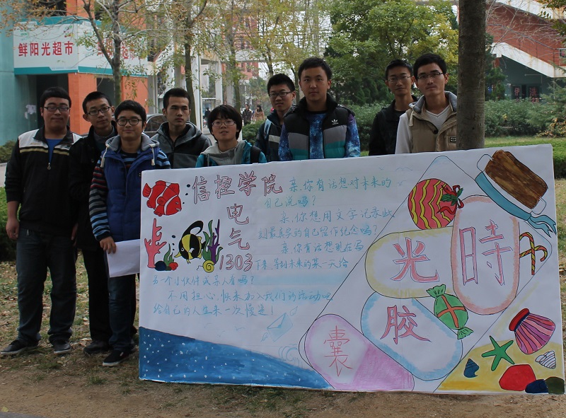 “这次活动仿佛让我穿越到了将来,让我对未来构造了一个美好的蓝图。一年后收到过去自己寄给自己的信,那时我肯定会惊喜万分的。”一位参与到本次活动中的同学孟月明如是说。据悉,电气13-3班将围绕“时间胶囊”这一主题展开“写一封信”、“自画像”等系列团日活动。